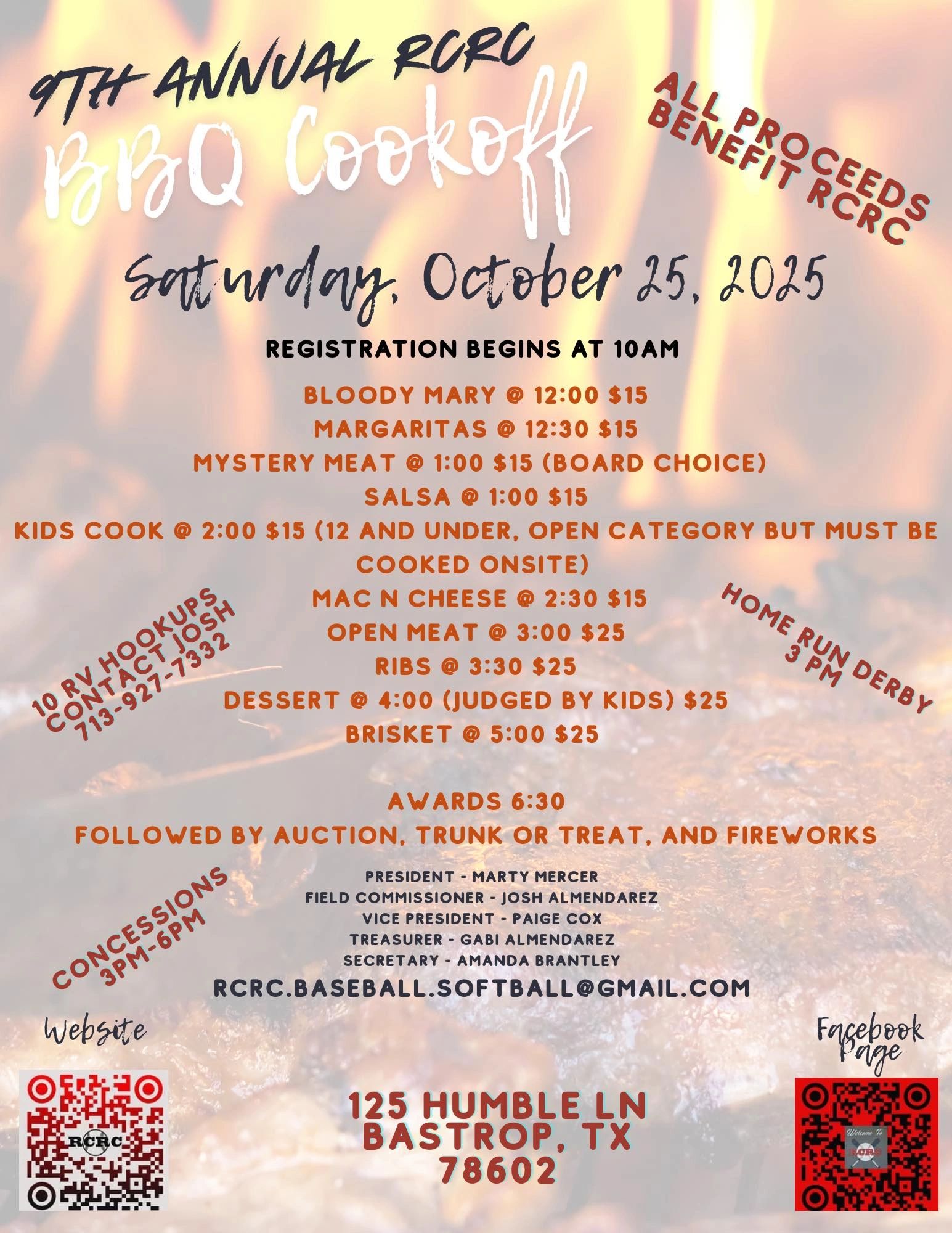 Fall season is practically here & it will be time for our annual end of season Fall Fundraiser & much anticipated cook-off! Join us for fabulous food; Kid & Adult Home Run Derby's; raffles; live auction; awards; fireworks at the end of the night & just an all around fabulously great time!